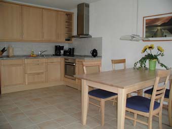 - hochwertig ausgestattete Wohnküche mit Herd Kühlschrank,