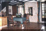 EG: großer rustikaler Salon mit gemütlicher Sitzgruppe vor dem offenen Kamin, intergrierte Küchenecke mit Herd, Cerankochfeld, Kühlschrank und Geschirrspüler, originaler Dielen- u. Fliesenfußboden, Zentralheizung,
